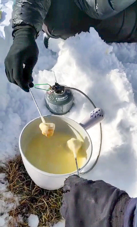 Je propose dorénavant de vous accompagner dans vos projets itinérants et de cuisiner pour vous. Exit les lyophilisés, place aux produits frais et cuisiner. Fondue savoyarde, risotto, pancakes, moelleux au chocolat... Tout ça après une longue journée de randonnée.